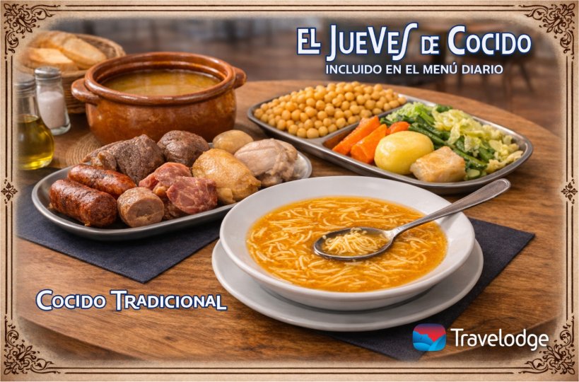 Disfruta cada jueves del auténtico Cocido Madrileño en Travelodge Alcalá de Henares por 14,50 €. Tradición, sabor y cocina casera en La Garena.
