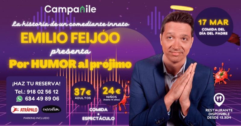 No te pierdas a Emilio Feijóo que vendrá a visitarnos para celebrar por HUMOR al prójimo el día del padre en Hotel Restaurante Campanile.