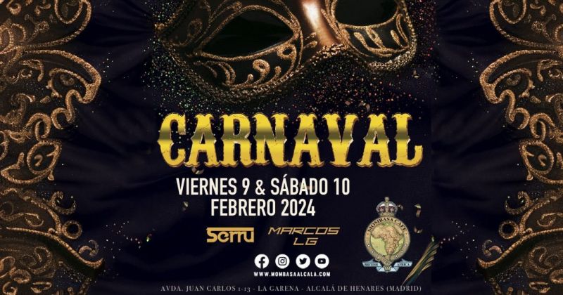 ¡La fiesta del Carnaval está de vuelta y en Mombasa lo vamos a petar con buena onda y alegría!! Este viernes 9 y sábado 10 de febrero de 2024, ven disfrazado, prepara tus mejores pasos de baile y disfruta de la música más top de Alcalá