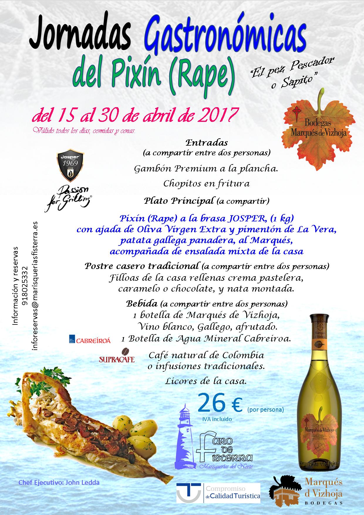 Jornadas Gastronómicas del Pixín (Rape) restaurante Faro de Fisterra mes de Abril 2017