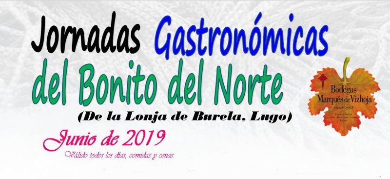 No te puedes perder las jornadas Gastronómicas del Bonito del Norte (De la lonja de Burela, Lugo) que nos ha preparado Marisquería Faro de Fisterra en Alcala de Henares. Válido todos los días, comidas y cenas de Junio 2019.