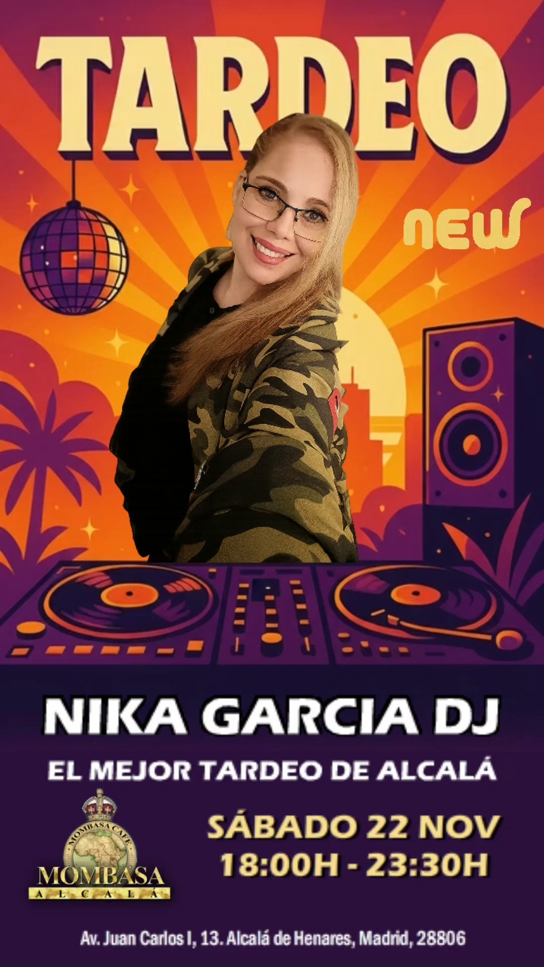 ¡Vuelve el mejor TARDEO de Alcalá! El próximo sábado 22 de noviembre, ven a disfrutar de una tarde llena de música, buen rollo y energía con Nika García DJ al frente de la cabina.